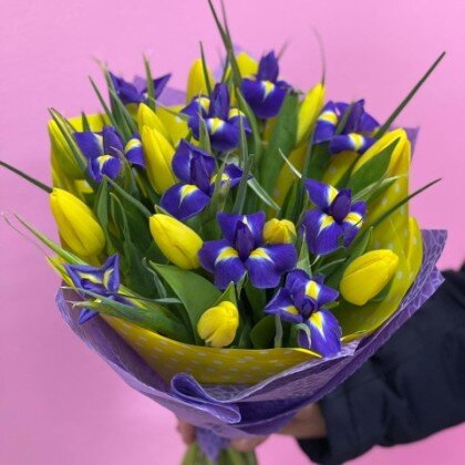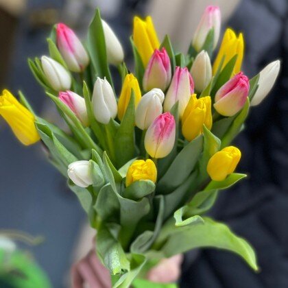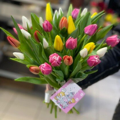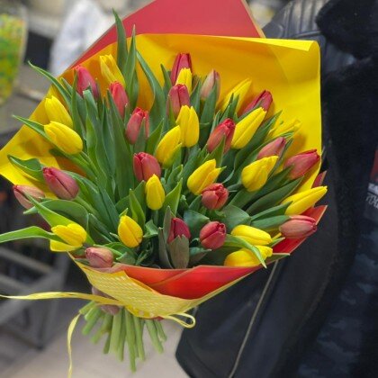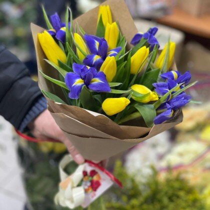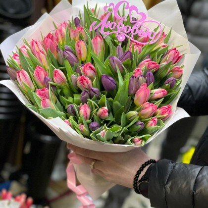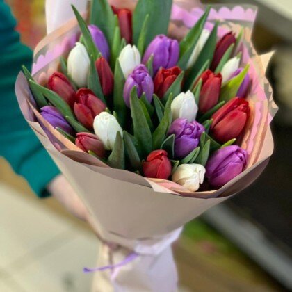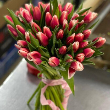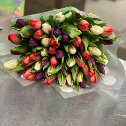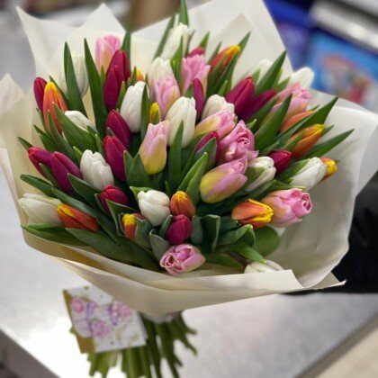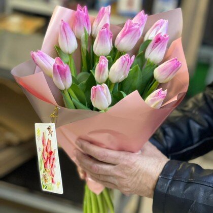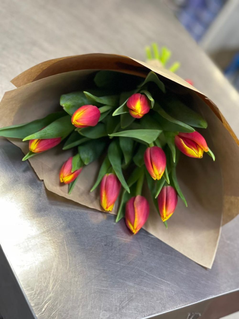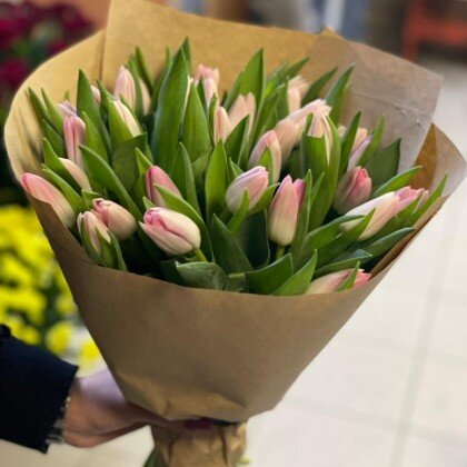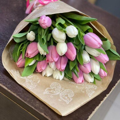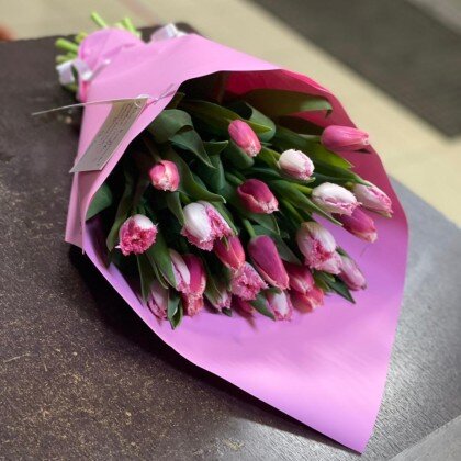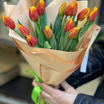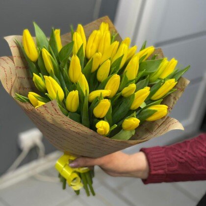 Тюльпаны – 9 шт Крафт бумага - 1 шт Высота 40см Ширина 20 см