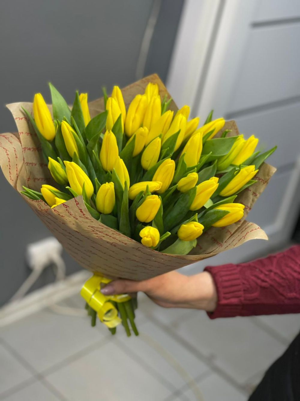 Желтые тюльпаны - 35 шт Корейская пленка - 1 шт Высота 40см Ширина 35 см