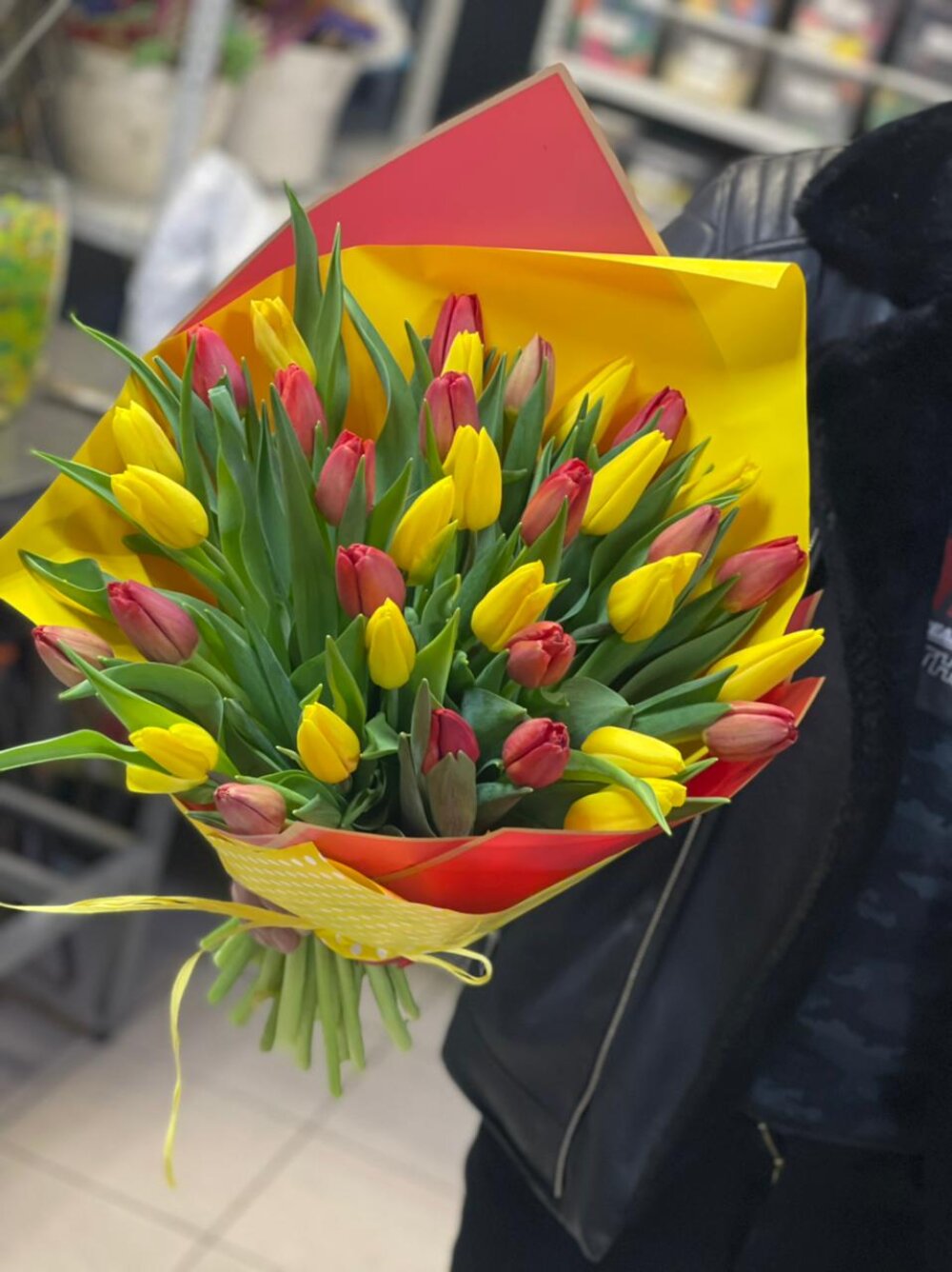 Букет красных и желтых тюльпанов 45