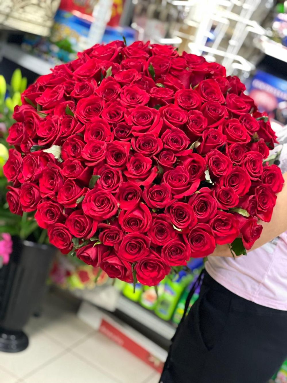 Бордовые розы- 51 шт Атласная лента-1 шт Высота 50см Ширина 40 см
