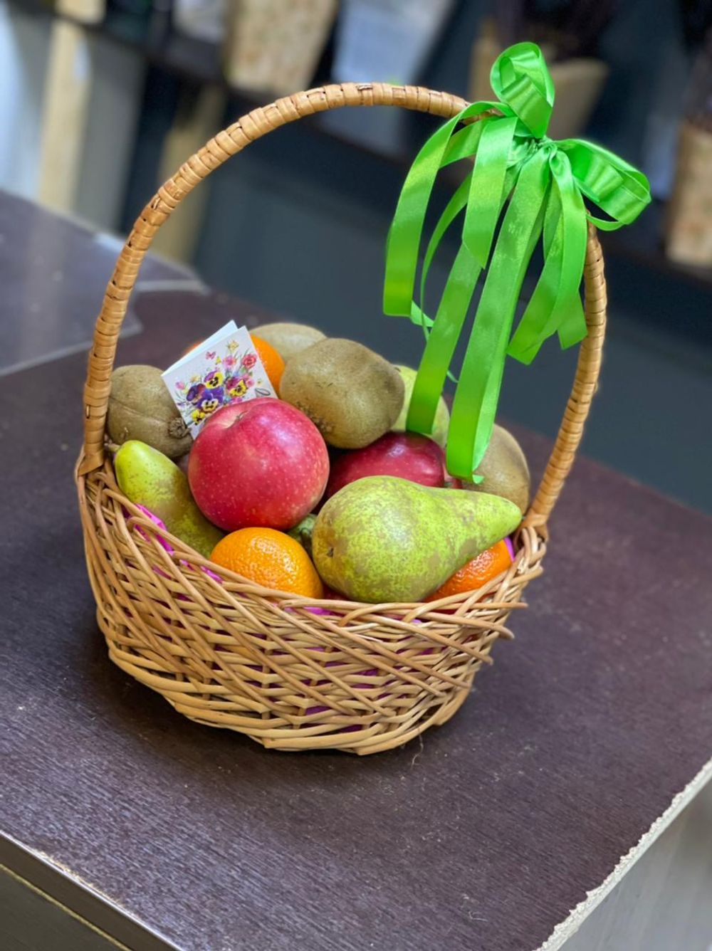 Киви - 4 шт Яблоко - 3 шт Груша - 3 шт Мандарин - 4 шт Апельсин - 1 шт Высота 25см Ширина 20 см